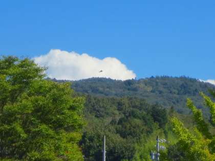 6年生の姿を追っている時に、遠くの山の稜線にヘリコプターがいました。