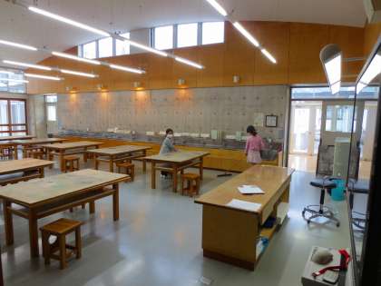 音楽室、図工室、手洗い場のようすです。