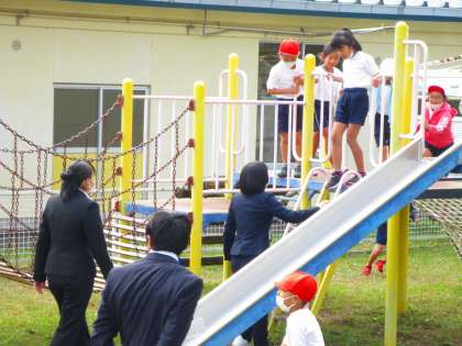 その一つに近くの名古屋学院の1年生の生徒さんが、学校の見学に来ています。毎年、来校されるのですが、授業を見学し、児童と触れあって帰られます。