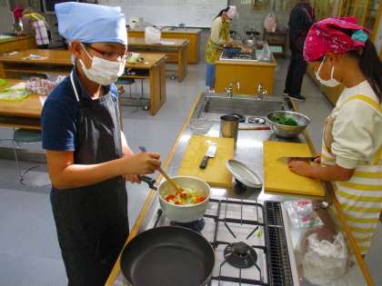 ちくわやこんにゃくを切っている児童もいますね。