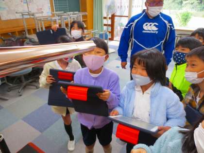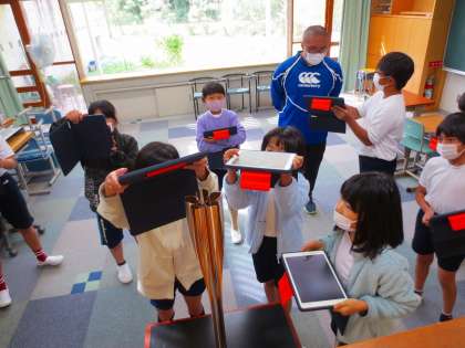 4年生は記念撮影をしてもらうのではなく、タプレットで自分で撮影します。