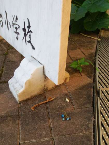 登校途中に児童はいろいろな楽しみをしながら歩いています。そして、宝物のように学校まで持ってくることもあります。しかし、教室に持ち込むことができないものは、昇降口のドアの外に、こそっと置いておきます。