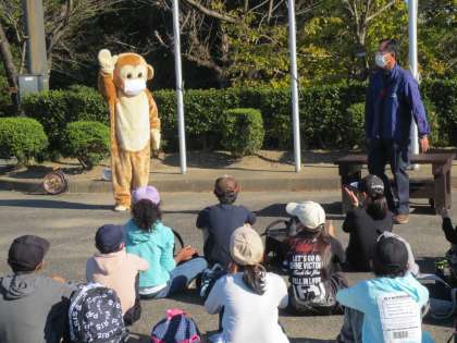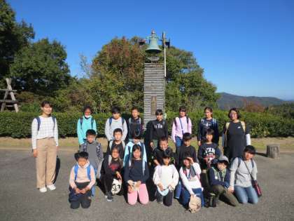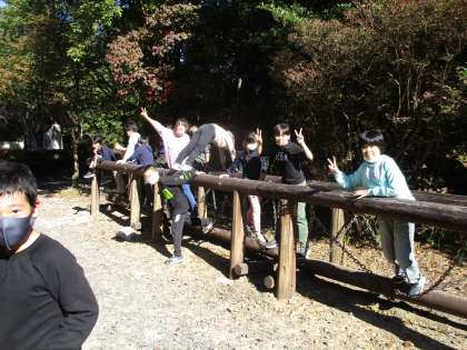 定光寺野外活動センターに到着してから、入所式を行いました。以前、お世話になった品野台小学校元校長の石原先生に定光寺の自然についてのお話をしていただきました。その後、友情の鐘を鳴らし、トリムで思いっきり体を動かしました。