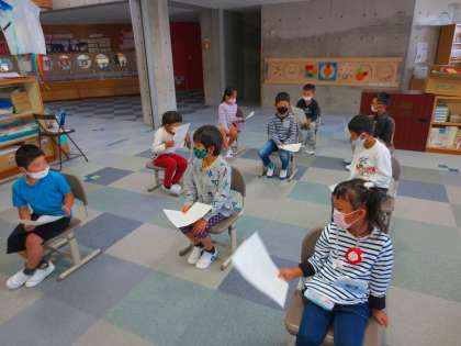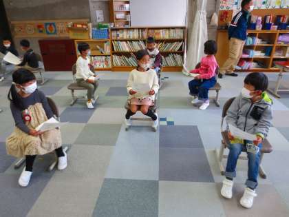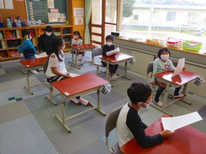 3・4年生も1・2年生も、基本近距離の対面にならないように、同じ方向を向いたり、間隔を空けたりしています。