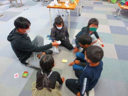 今日はしっかりと雨が降りました。そのため放課も室内です。いろいろな過ごし方をしています。