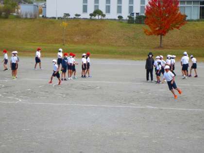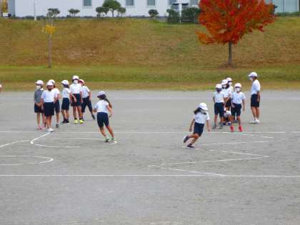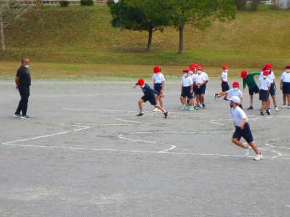 次は運動場にいろいろな白線が引いてあり、その上を走るというものでした。