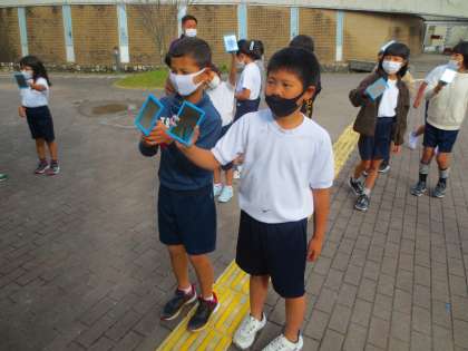 今日は曇りがちで、太陽が雲に隠れると反射光が消えます。逆に太陽が雲から出てきそうになるとわいわい言いながらテンションを上げます。