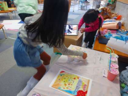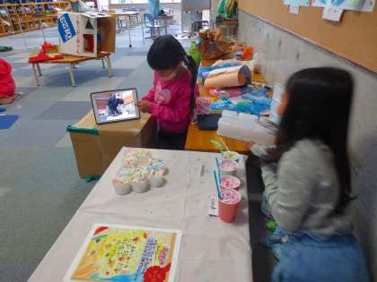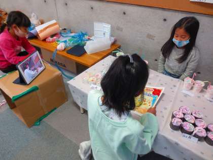 店員役とお客さん役で動画を撮影していました。動画を撮影している理由を聞くと「後で自分たちで見て反省するため」ということでした。