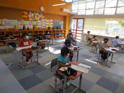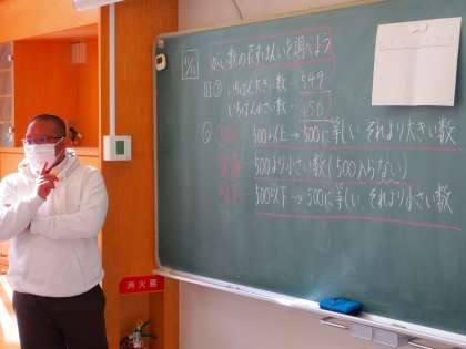 今日の授業では「以上」「未満」「以下」の意味を知り、課題に取り組んでいました。