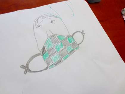 「見て見て、〇〇ちゃんのマスク」というと上手くマスクを描いていました。