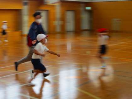 準備運動で、鬼ごっこをしていたので、つい一緒に走って撮影です。たくさん撮影しましたが、ぶれぶればかりで使えるのはたった2枚です。