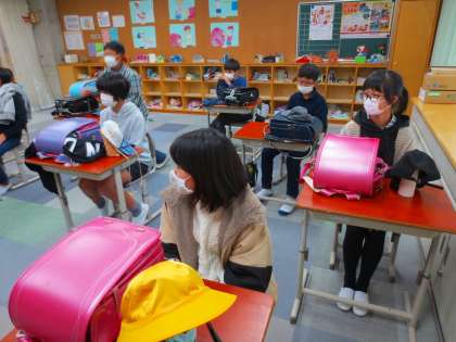 机の上には帰りの支度ができていて、ランドセルが並んでいますが、とにかくランドセルルがピカピカです。ランドセル品質が向上しているのもあるかもしれませんが、丁寧に扱っているんでしょうね。