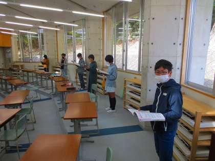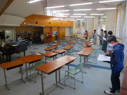 音楽室は換気のため開放しているのですが、暖房が工事中のため使えません。また、北側に面しているので陽が当たりません。12月中旬までがまんしてくださいね。