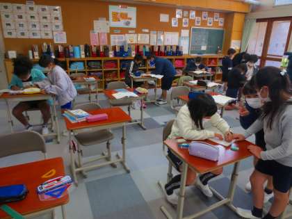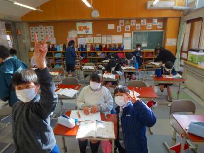 教え合っている場面を撮影したいのですが、あいかわらずカメラを向けるとポーズを取るので、だまして撮影しようと思いますが、ちっともだまされません。