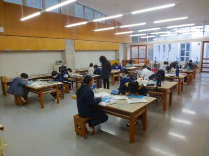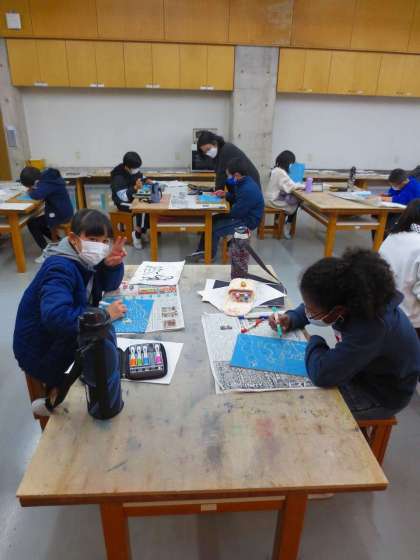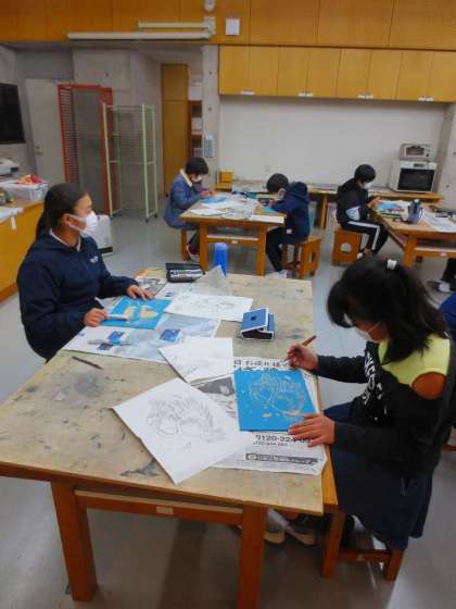 木版画は完成に向けた進行がかなりバラバラになるので、彫りと刷りが混じります。訪問した時はまだ全員彫りの状態でした。