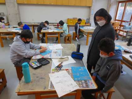 木版画でも石膏版画でも、上手な版画にするにはかなり教員の力量が左右されます。