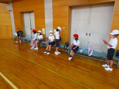 二人組で規定の回数を跳ぶことができたら、給水タイムですね。