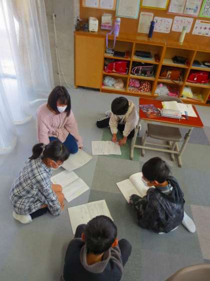 小グルーブで互いの発表を聞きます。ある程度の時間が過ぎるとメンバーが移動して、新しいグループの中で発表をし合います。最終的には全員の発表をきくことになるようです。