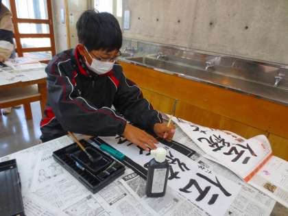 書き初めですね。さすが6年生です。勢いの良い張りのある字を書いています。