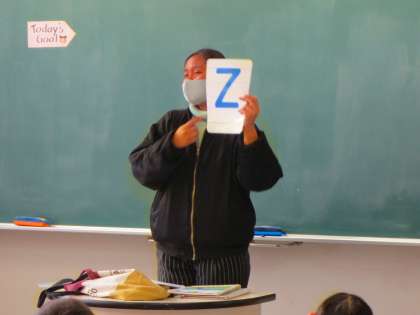 今年初めてのALTの来校です。みんなアルファベットはしっかりと言えますよー。