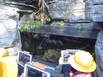 みんなで見たアマゾン川水槽での魚のえさやりはすごい迫力で、その迫力に驚いて体をビクッとさせている子もいたほどでした。