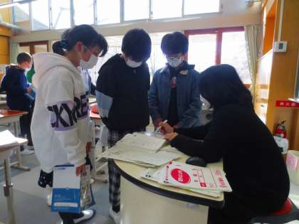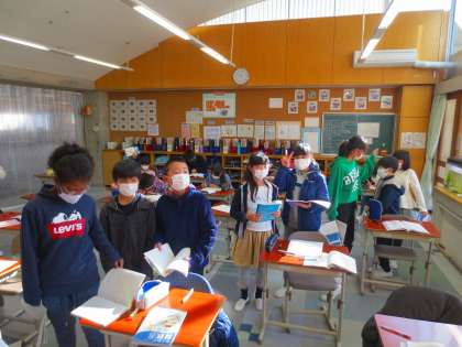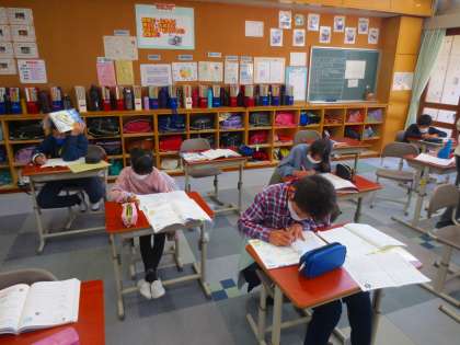 最近はタブレットを使ったり、大型画面を使ったりする授業のようすを掲載していますが、5年生で昔ながらの光景を見ることができました。