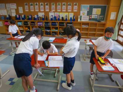 次の時間が体育ということで、なんと体操服で算数をしていました。いくら暖房や床暖が入っているからとはいえ寒いだろうと聞くと、「え? 平気平気」とか「寒くなーい」という返事ばかりです。もちろん換気もしているので、それなりの室温なのですが、ほんと子どもは凄いなと思います。
