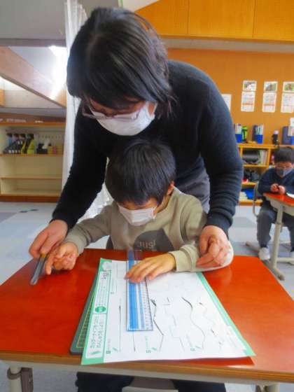 2年生と一緒にあおば学級もカッターナイフの使い方を学び、図工をしています。