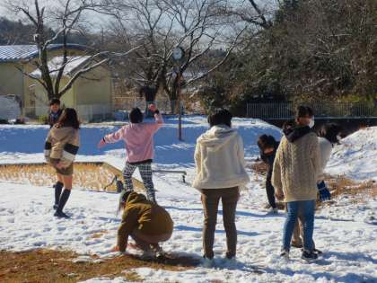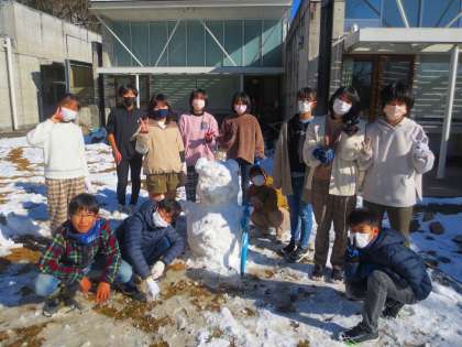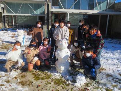 6年生は大柄なので、あっという間に2つの雪だるまを作っちゃいました。