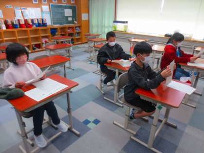 送られる側の6年生は話し合いに参加せず、お手伝いをしています。