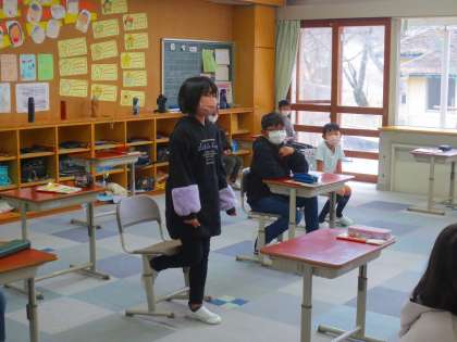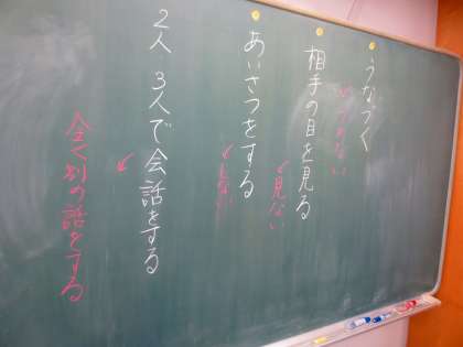 会話をする時に「人の話にうなづかない」「相手の目を見ない」「あいさつをしない」「関係のない話をする」という会話をしたらどんな気持ちになるだろうという授業でした。
