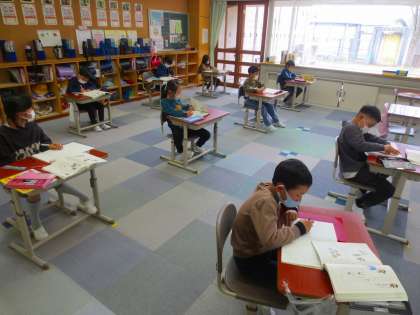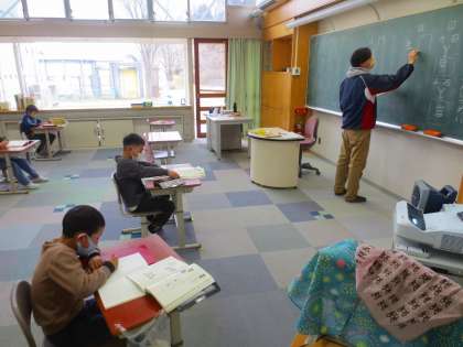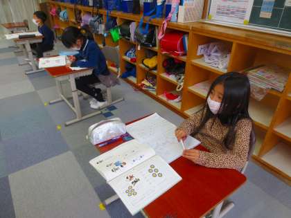 例えば「木」と「木」で「林」となりますね。パズルのようなものですが、「あっ、わかった」とか「えー、わかんない」とかいろんな反応があり、一生懸命に取り組んでいました。