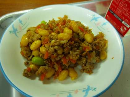1年生の児童が「これが美味しい」と言っていたのは、ピリ辛大豆です。