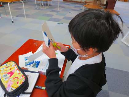 ある児童は、ハサミの歯を動かさず、歯を利用してカッターのようにシュルーっと切っていました。これができるなんて凄いです。