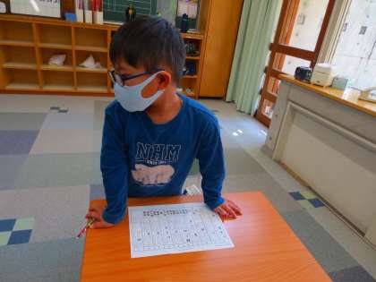 個別の学習が始まり、やっていることがそれぞれ違います。友だちに迷惑をかけることなく、学習することができますが、やはり隣で何をやっているかは気になりますね。