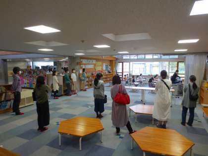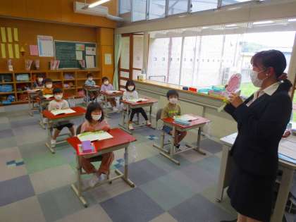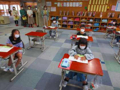 2年生の参観授業です。保護者の方々のソーシャルディスタンスがすばらしいですね。