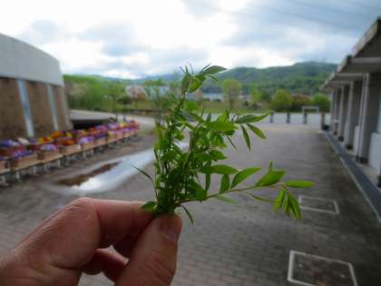 登校してきた児童からプレゼントは、お花でも石でもなく、葉っぱでした。