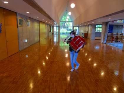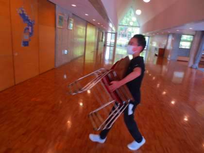 登校した児童が昨日のPTA総会の椅子をさっそく片付けてくれました。