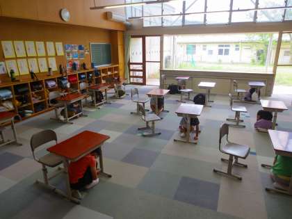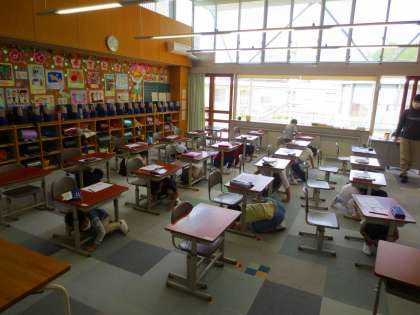 今日は地震が発生した後、家庭科室から出火したという想定で訓練をしました。
