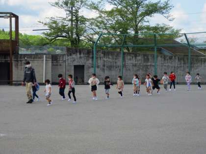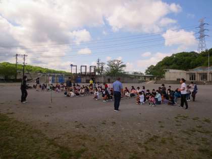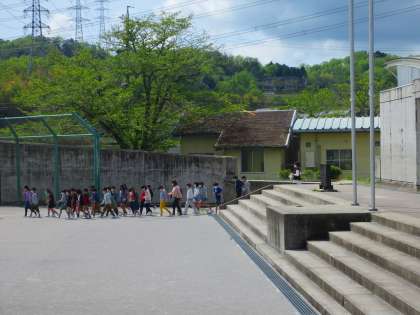 揺れが収まり、安全を確認した後に運動場に避難します。