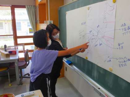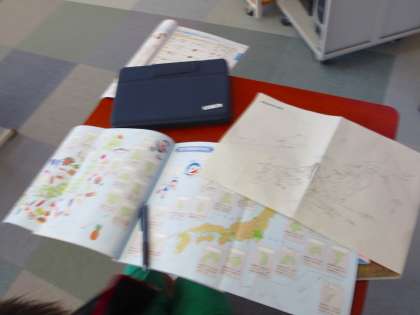 自分が知っていたり、行ったりした都道府県をボードの日本地図に貼っていました。