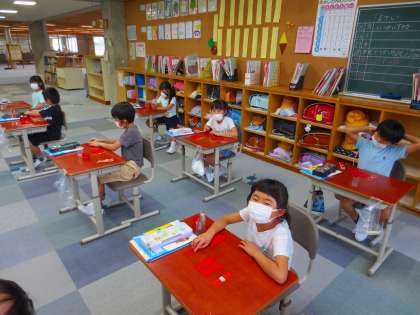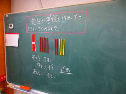 数え棒を使いつつ、1年生で学んだ数より大きな数の概念を学んでいきます。