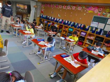 授業中は落ち着いて集中できるようになってきた1年生は、逆にカメラを気にしなくなってきました。いい雰囲気です。