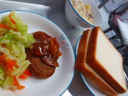 パンにハンバーグを挟んで食べるのです。美味しかったです!