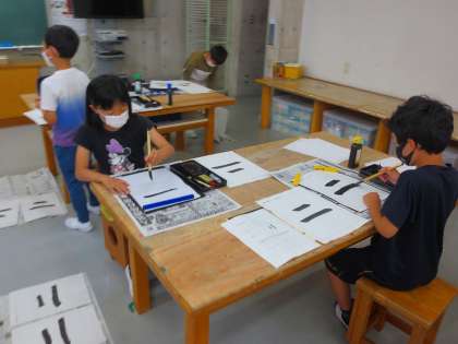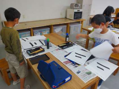 「僕の字どう?」とみせてもらうととても上手です。「僕、習字習っているんだ」と誇らしげに語ってくれました。「私、習っていない」という児童も一生懸命に筆を操っていました。