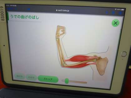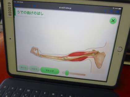 まぁ、動くぐらいはそんなに驚かないのですが、実は児童が操作すると腕が透明になってきて筋肉が見えるようになり、筋肉の動きがわかるのです。