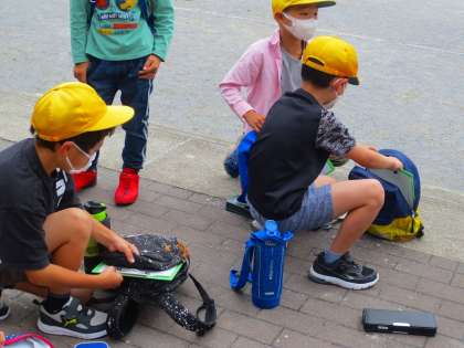 朝から3年生とあおば学級は近くの神社に校外学習にでかけました。