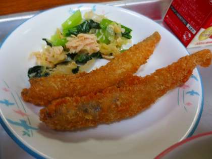 メヒカリのフライかと思いましたが、今日はししゃものフライでした。