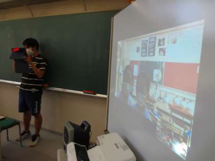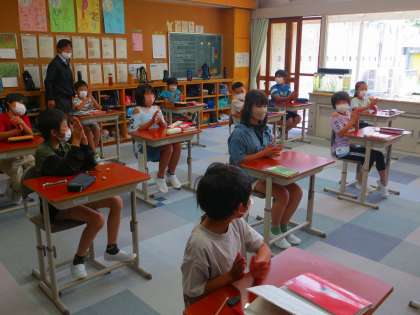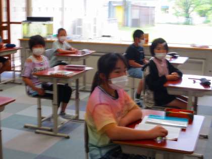 小中一貫教育の一つとして、今年度から掛川小学校と交流を深めることになりました。今日は最初ということで、5年生同士がZoomで自己紹介をし合いました。
