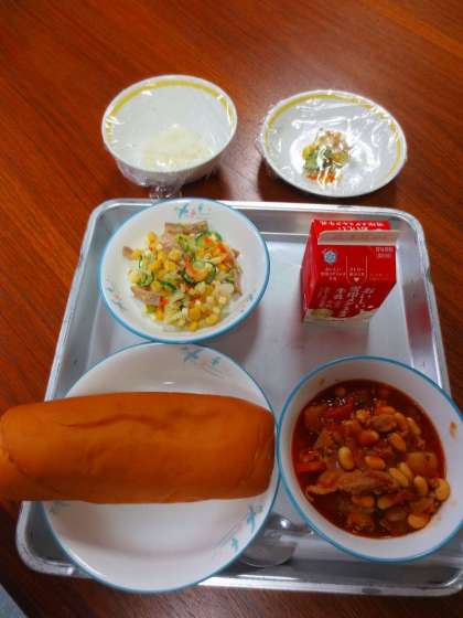 木曜日なのでパンの日です。私はチーズ入りサラダが大好きです!